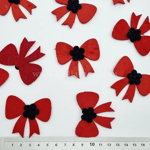 تکه دوزی طرح پاپیون، مدل دوختنی، جنس مخمل توشکا، طول و عرض 5 سانت، یک اکسسوری پارچه ای ظریف برای تزیین انواع لباس و هنرهای تزیینی استفاده می شود.