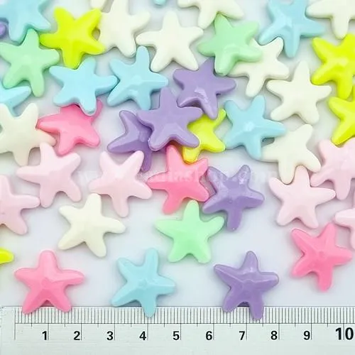مهره تزیینی ستاره دریایی، هر بسته حدود 50 گرم و تقریباً تعداد حدود 55 عدد، جنس لاکی، گزینه ای عالی برای ساخت زیورآلات، آویز، دستبند و انواع هنرهای دکوراتیو هستند.