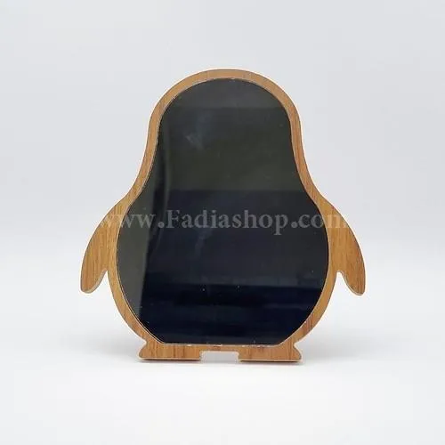آینه رومیزی، طرح پنگوئن، پشت آینه پایه استند دارد، طول حدود 18.5، عرض حدود 17.5، ارتفاع حدود 18.5 سانت.