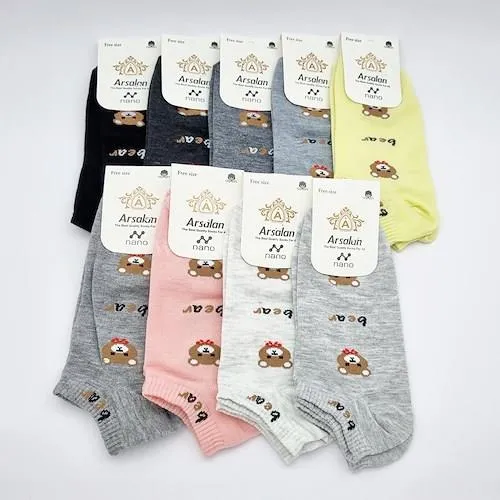 جوراب زنانه مچی نخی، نرم، طرح خرس، سبک و خنک که پا را در تمام طول روز راحت نگه می دارند. انتخابی عالی، برای ست کردن با هر لباسی و انواع کفش های، کتونی، اسپرت.